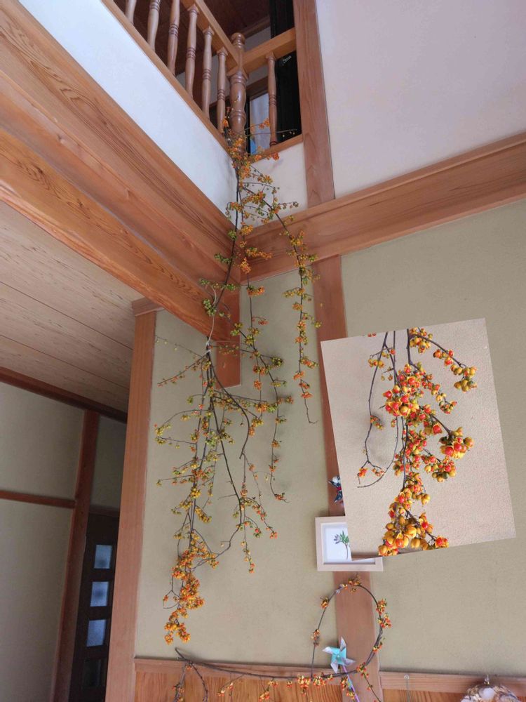 昨日採って来たツルウメモドキが、夕方になり弾けてオレンジ色になり玄関が明るくなりました💛✨💛✨🥰❣️