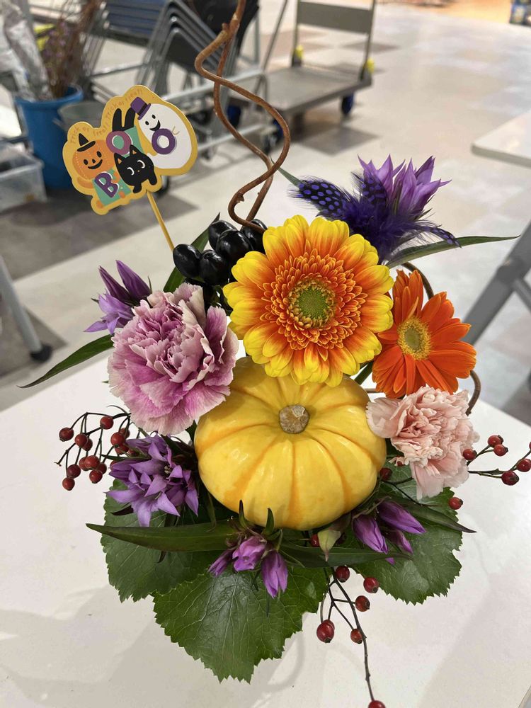 ハロウィンアレンジ作成しました。 自分で飾るの難しいです(笑)