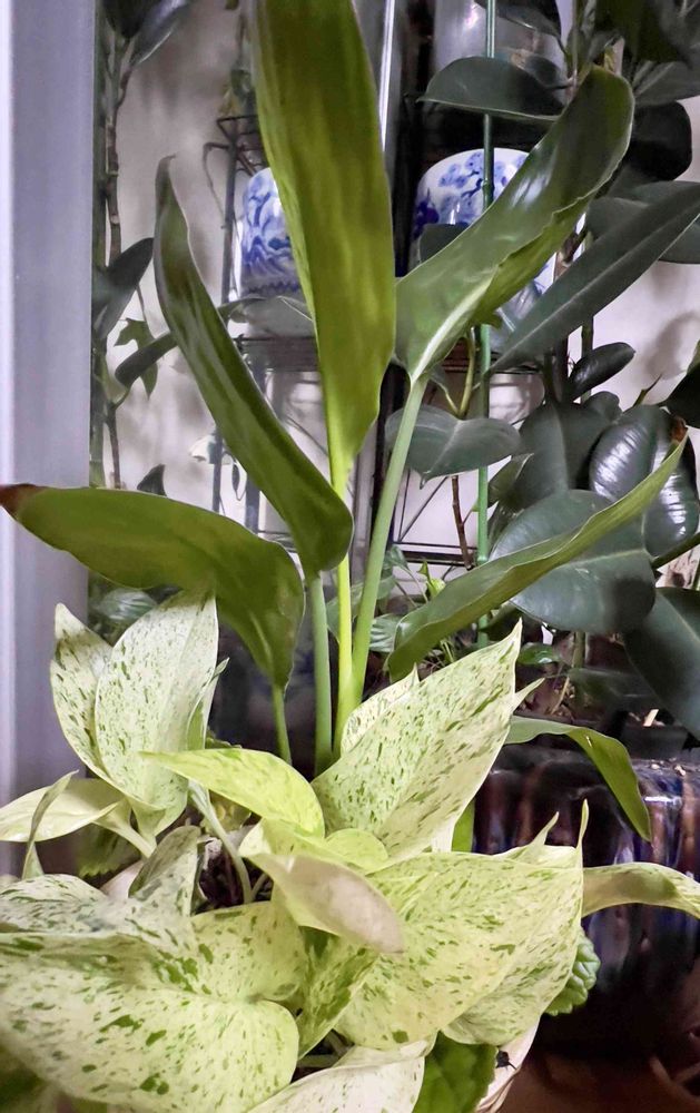 ストレチアが緑でポトス変わった色合いのがよく似合ってる😍💚