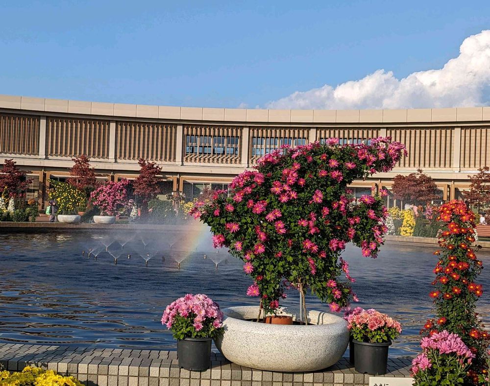 🐠熱帯魚を型どった菊の花を撮っていたら噴水に小さな虹も出来ていました🌈