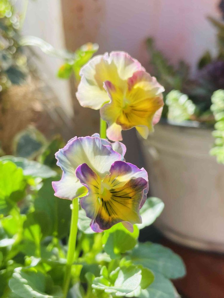 皆さん少しずつ素敵なビオラパンジーを迎えてますよね〜マカラプアちゃんのも優しい色で素敵〜💛🩵🩷🤍💕