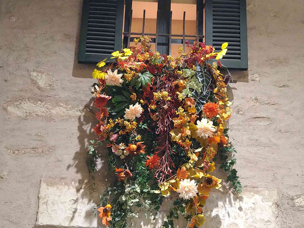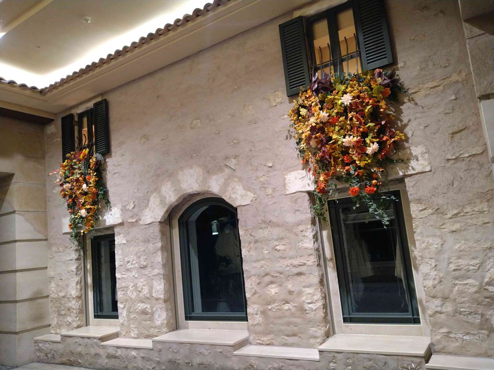 福岡天神地下街に飾ってあった縦長リースを見つけて📸4枚あります。スライドしてご覧ください。