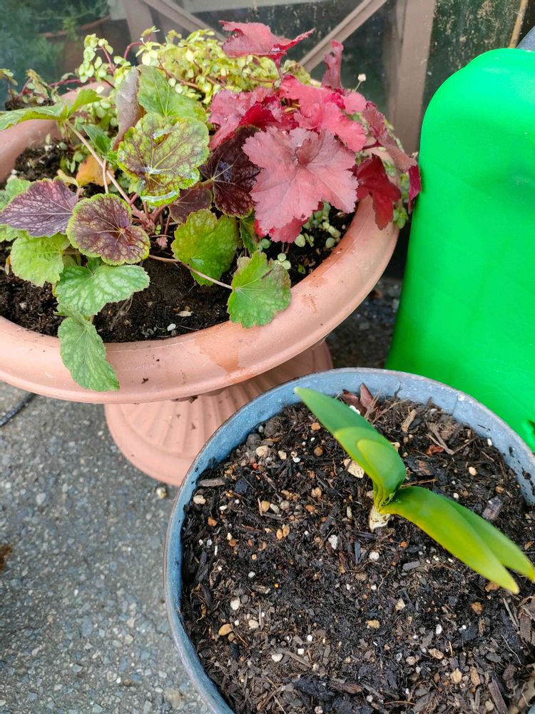 ヒューケラさん、堀上げて寄せ植えしました。🤭