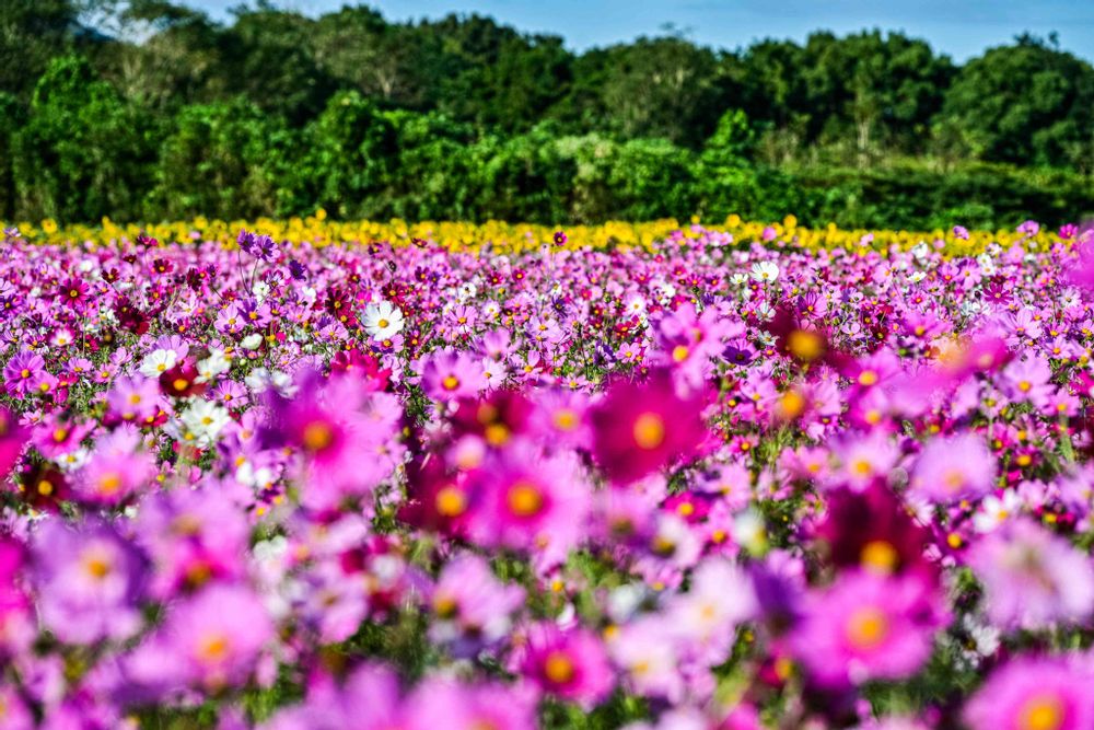 広いコスモス畑で風に波打つコスモス🤗🤗