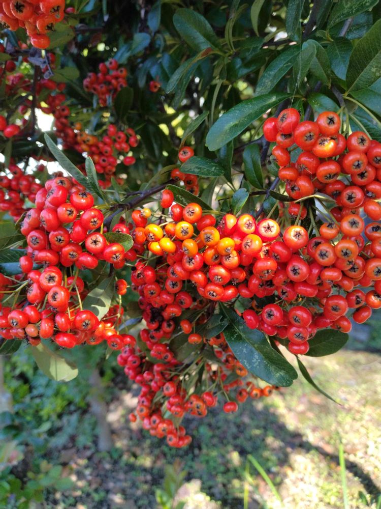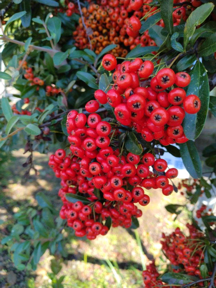 ピラカンサスの赤い実は和風の様な洋風の様な 見るたびにそう思います