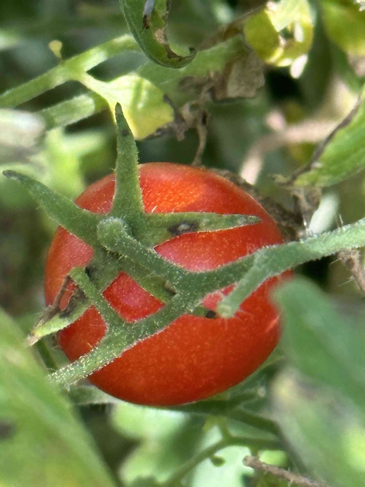 ミニトマトを食べながら菜園の片付け、寒くなって色付きが遅いけど、良く色の付いたのは甘いです‼️