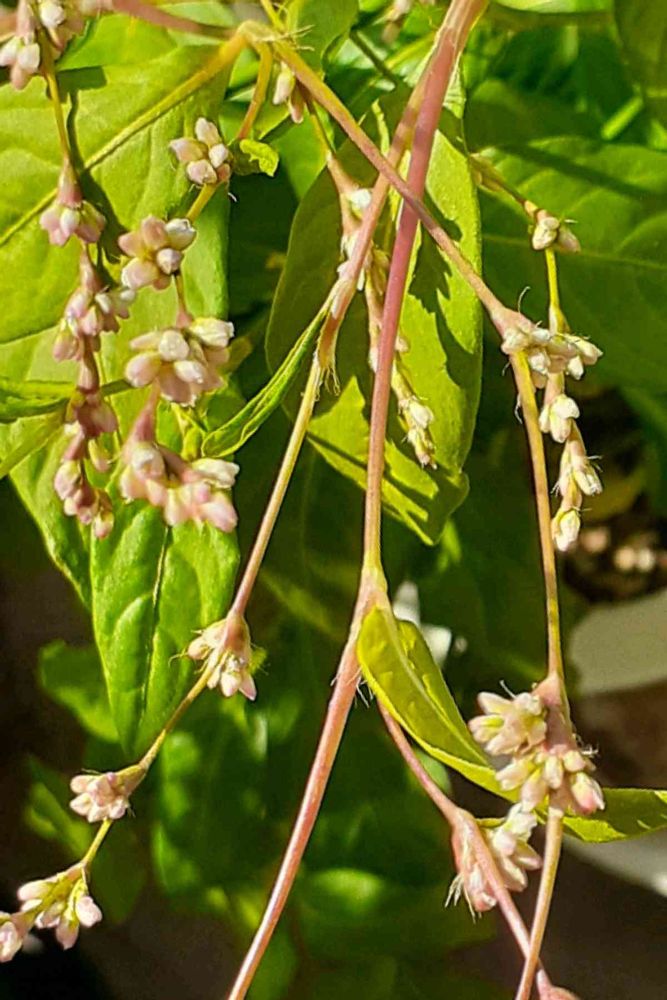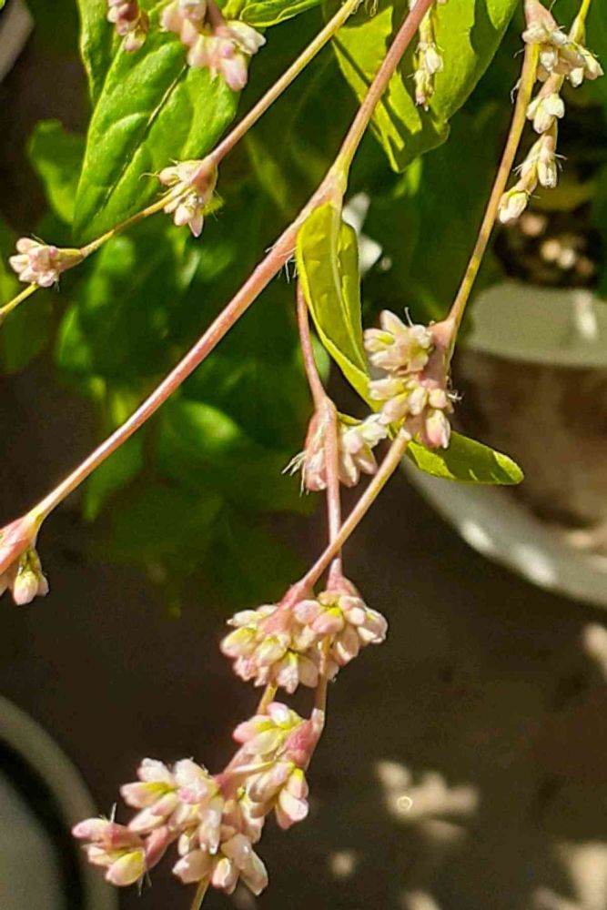 7本の茎に全部小枝が出てツブツブの花が開いて枝垂れてきたんよ〜