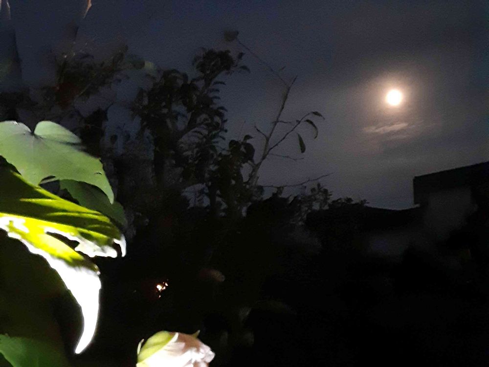 お月見🎑と夜のお花🌹を一緒に見れる幸せに浸っています✨