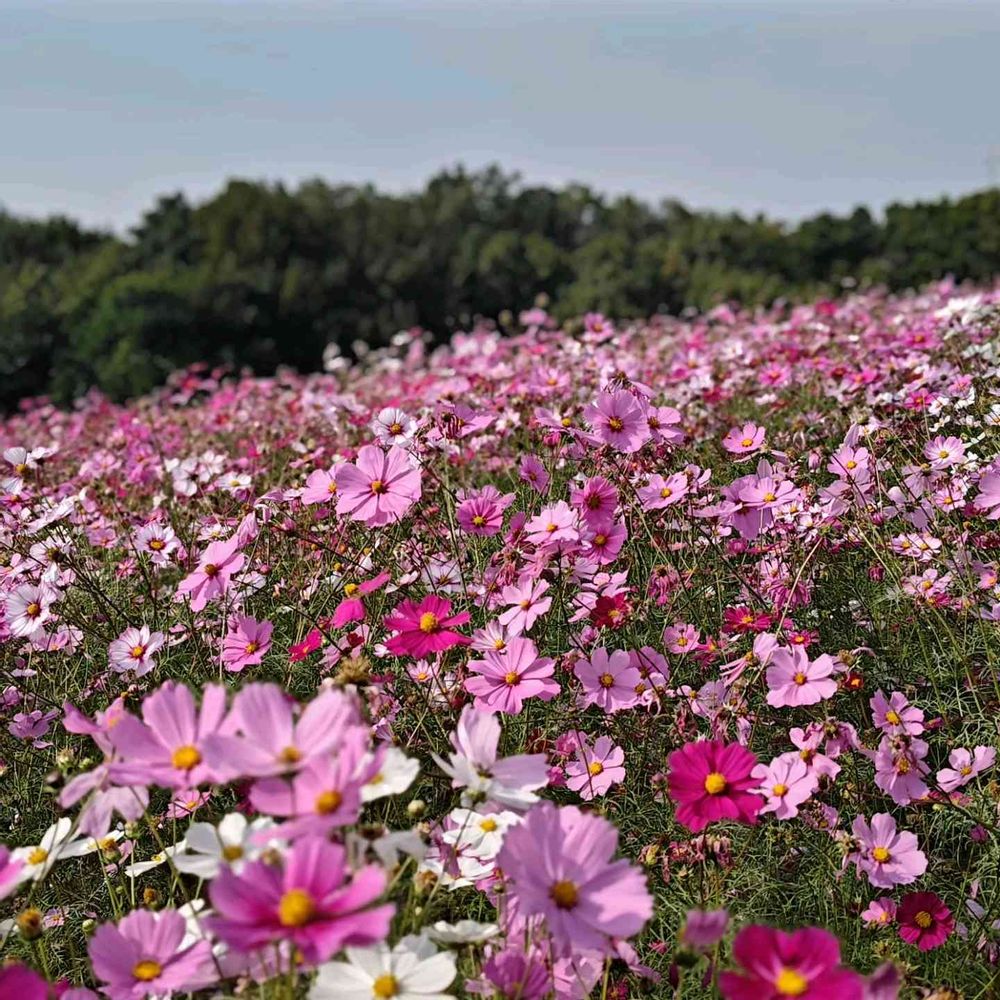 花の丘一面に広がる、コスモスやコキア、赤蕎麦の花、綺麗でした( ˘ ³˘)♥