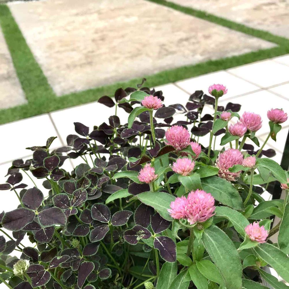 黒っぽい葉の色がピンクの千日紅を引き立てて凄く可愛いですねー(*^▽^*)
