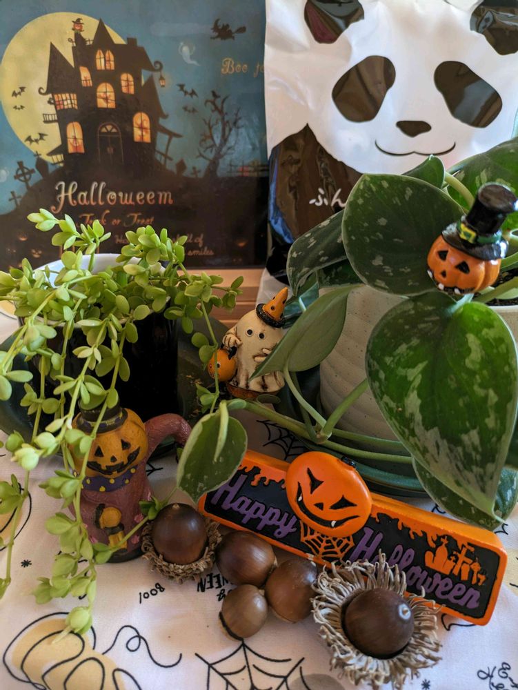 かわいいハロウィンディスプレイですね〜でもダークだからパンダちゃんもちょっと不気味な感じに見えちゃいます〜