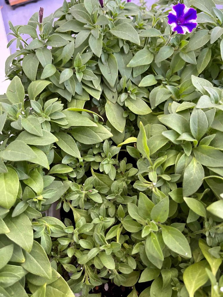 PWスーパーチュニアビスタミニブルースター✨花数が減ってきました😅昨日の夕方に突風が吹き😨植木鉢が倒れてしまいましたが、大丈夫でした🍀少し伸びてる所を切って中の方を見ると😮新芽がたくさんあり😊まだまだ成長中みたいです☺️