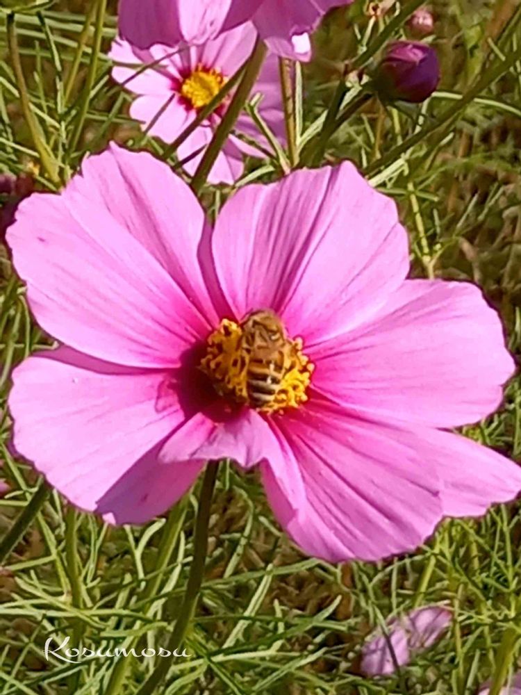 約3ヘクタールの休耕田で、コスモスが赤、白、ピンク色に咲き、見頃を迎えてました