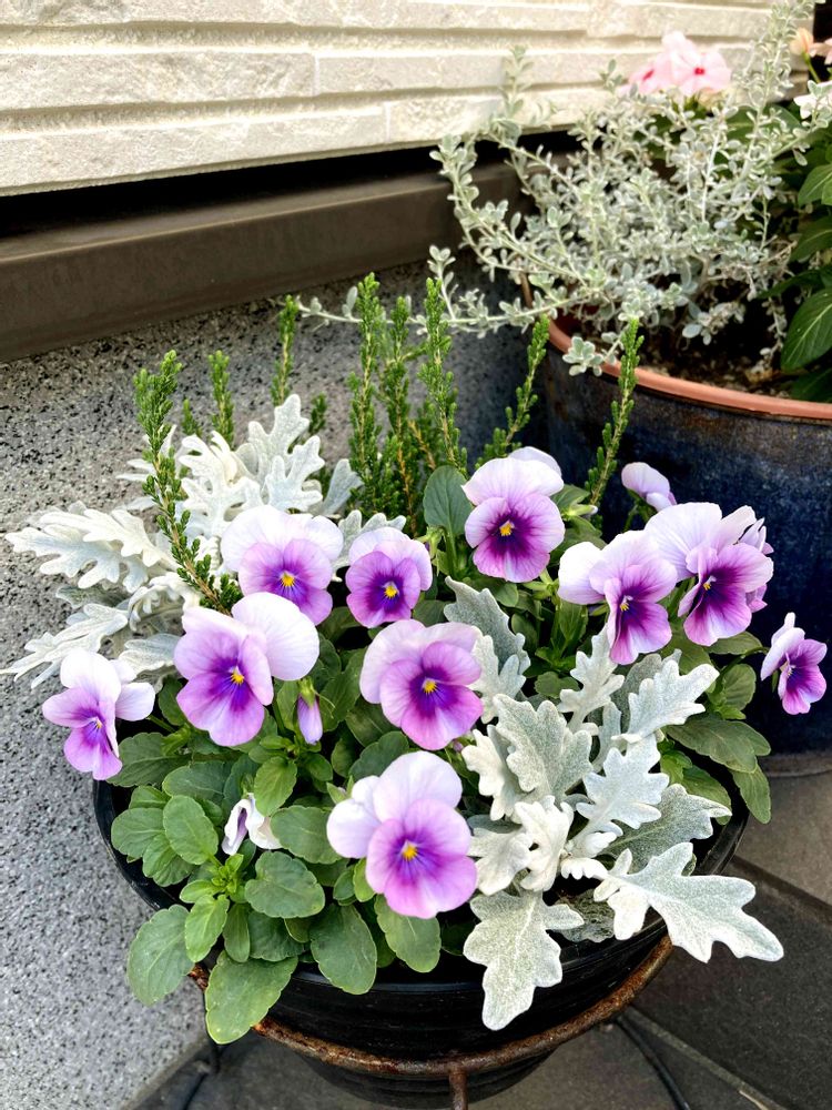 凄く久々に寄せ植えを作って一週間。無事に根付いたようで、ビオラが可愛く咲いてきました😊