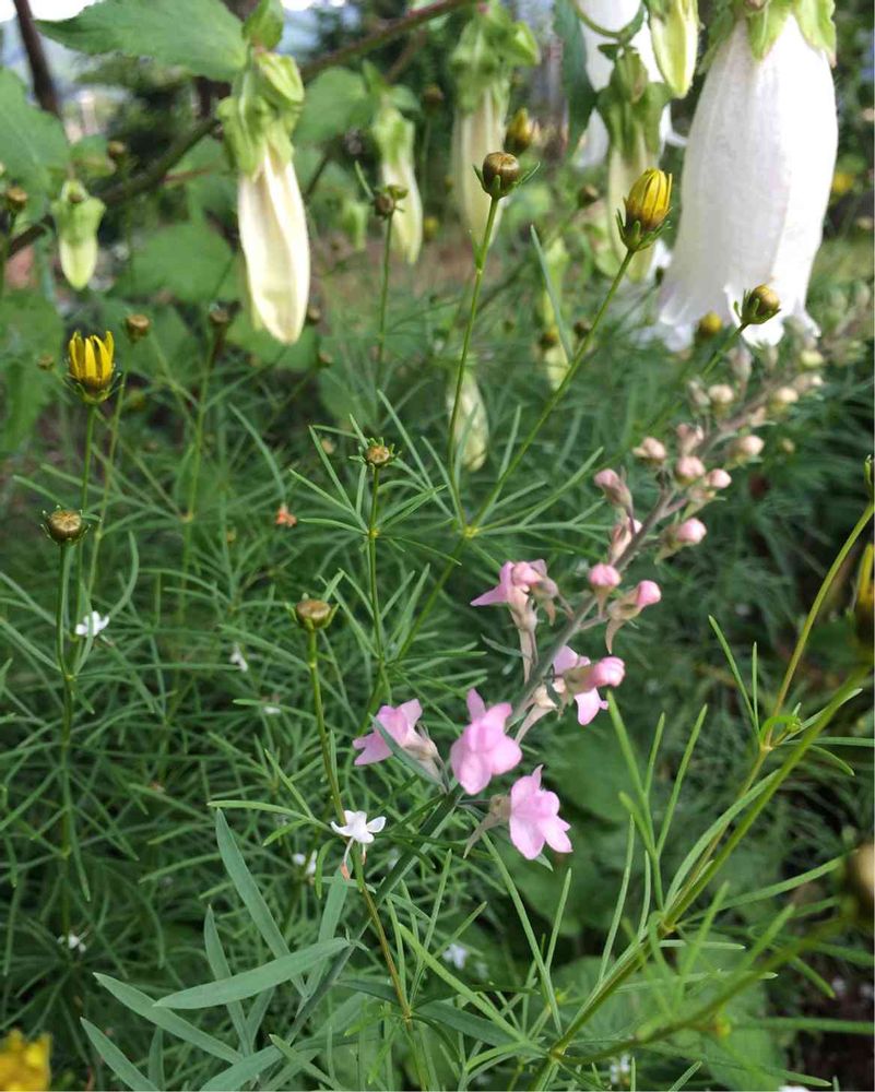 ピンクの花が咲いてわかったよ。宿根リナリアがひそかに生きてた。