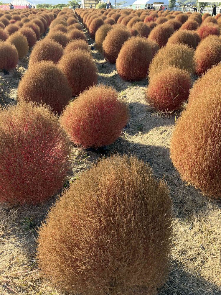 夏に見た時緑色だったコキアは紅葉し始めて茶色っぼくなっていました🌳
