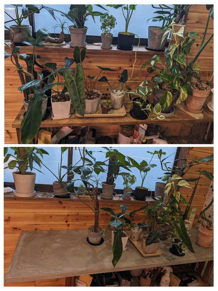そろそろ外の子達を取り込まないといけないので棚の天板を拡張🔨