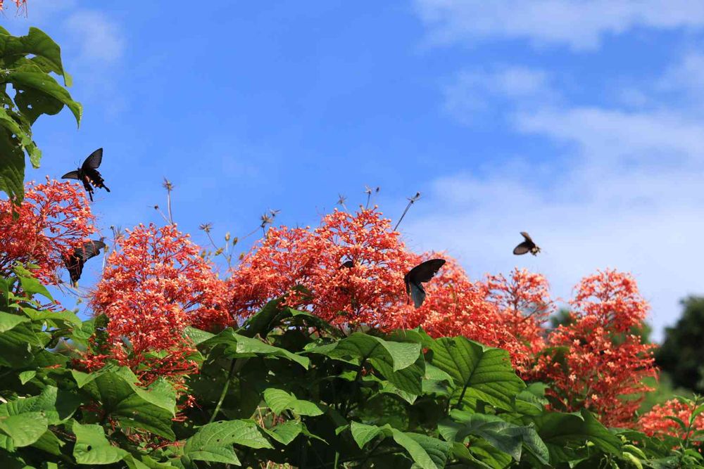 島緋桐の赤い花に、揚羽蝶🦋が乱舞、、、。 羨ましい限りです。