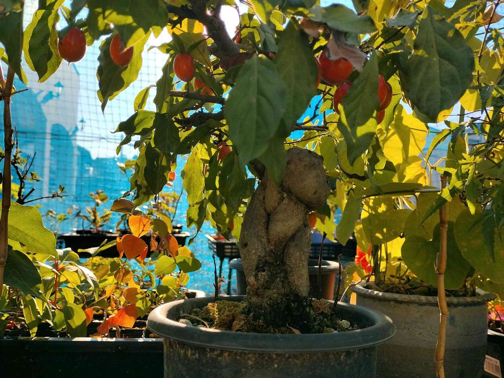 盆栽というミニマムな世界にはそれに耐えうる小さな実である必要があります。おままごとに通じる世界観です。
