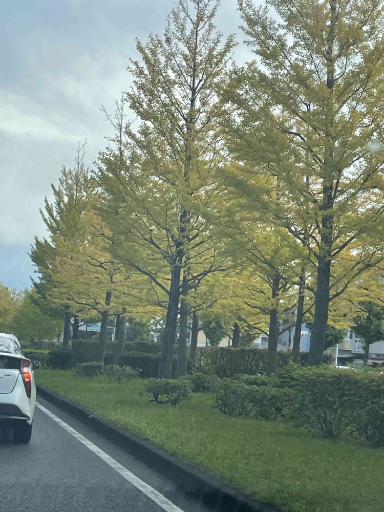 多摩ニュータウン通りの銀杏も色付いてます