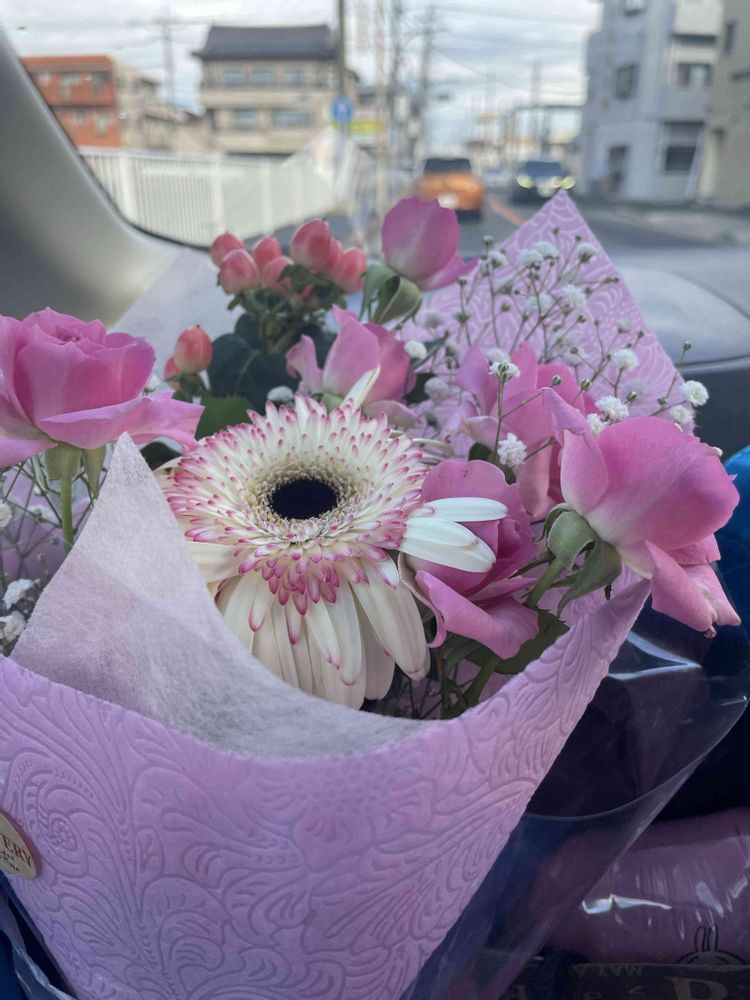 聴きたくて花束とプレゼントを持って移動中🚗😆