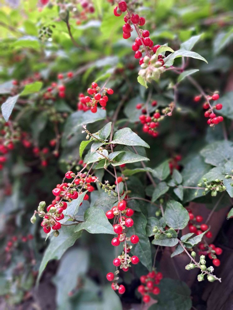 自宅の庭で、数珠珊瑚を見つけました。いつのまにか自生していたようです。可憐な雰囲気です。