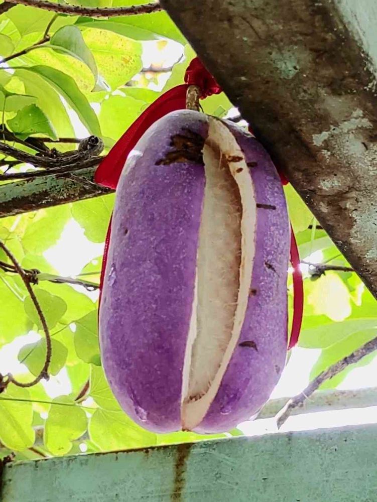 先週、お姉さま方は藤棚で見つけたアケビでオヤツしてました。