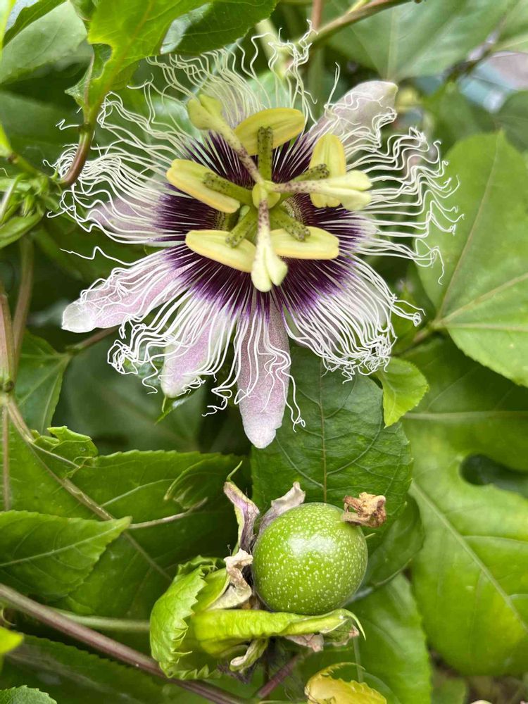 今日 鉢植えの黄色🟡の実になるパッションフルーツの花が咲きました。