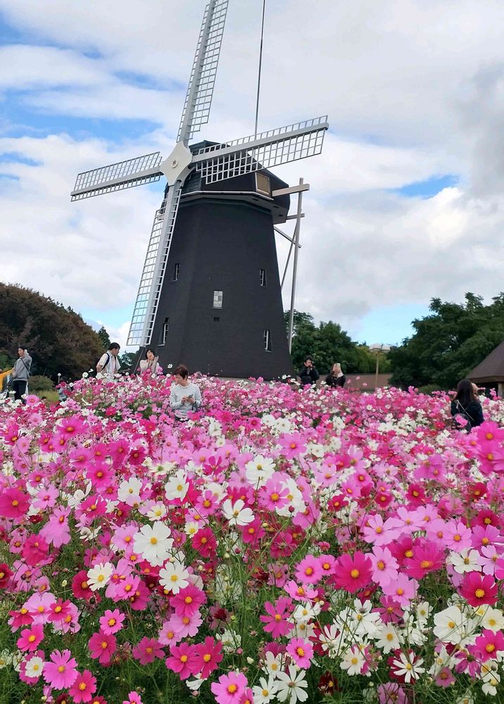 風車の丘のコスモス畑🌺🌿🤍🌿🌸