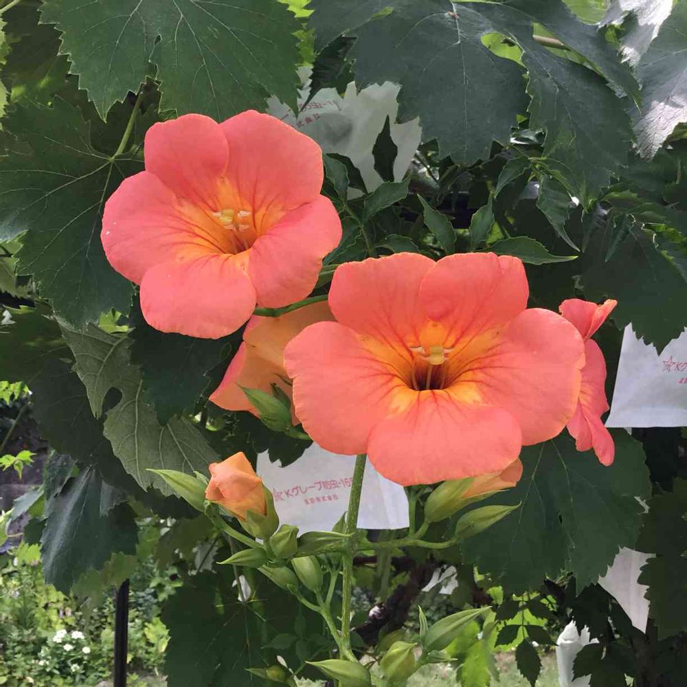 ノウゼンカズラの花が咲きました。去年は剪定しすぎて花芽が一つもなかったんですよ。😢