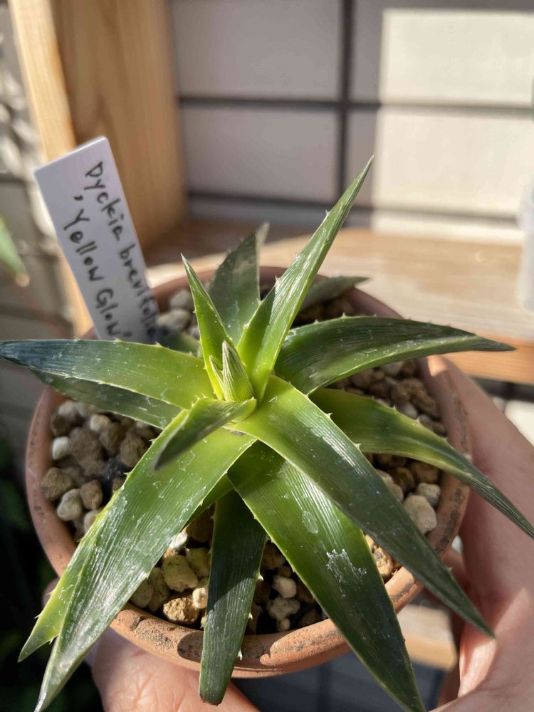 brevifoliaはディッキアの原種の一つですが、この子はその斑入りです。鋸歯小さめトリコームなしなのでアロエっぽい見た目です。小さいディッキアかわいいです。