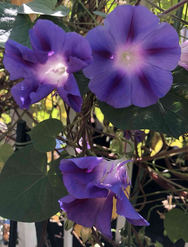 種まきして、いくつか苗を定植させてフェンスに絡ませてるけど、キレキレのピンクと外側が少しだけスプリットのブルーの花が良い感じに咲いてるよ❣️