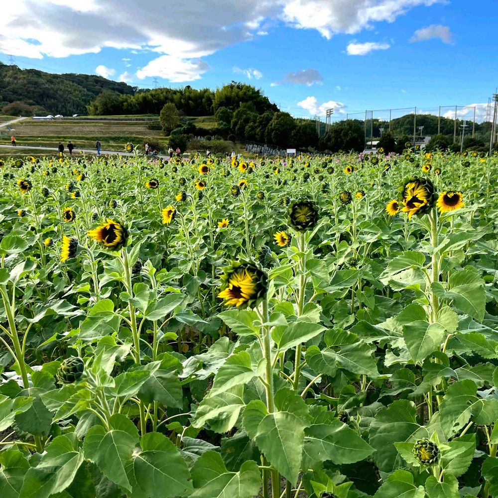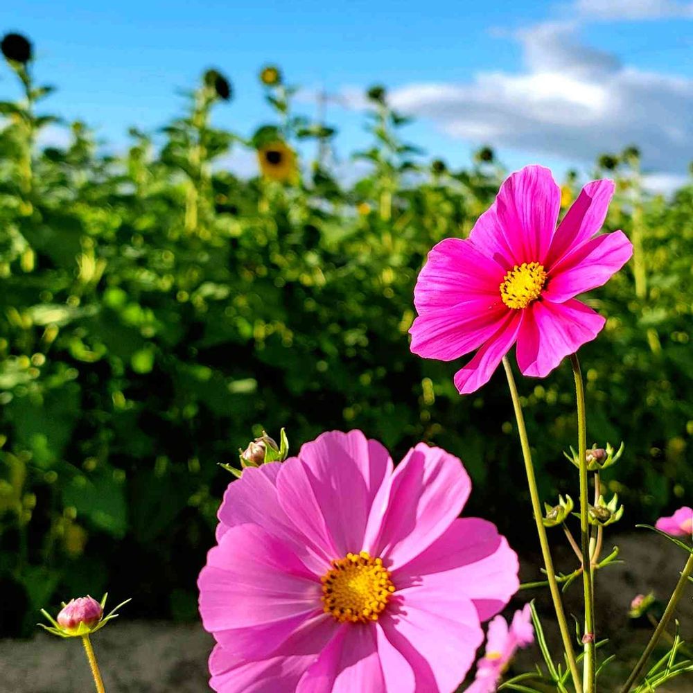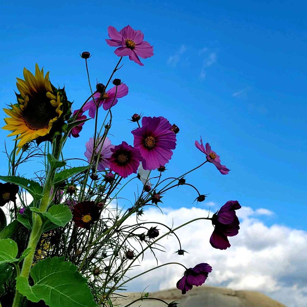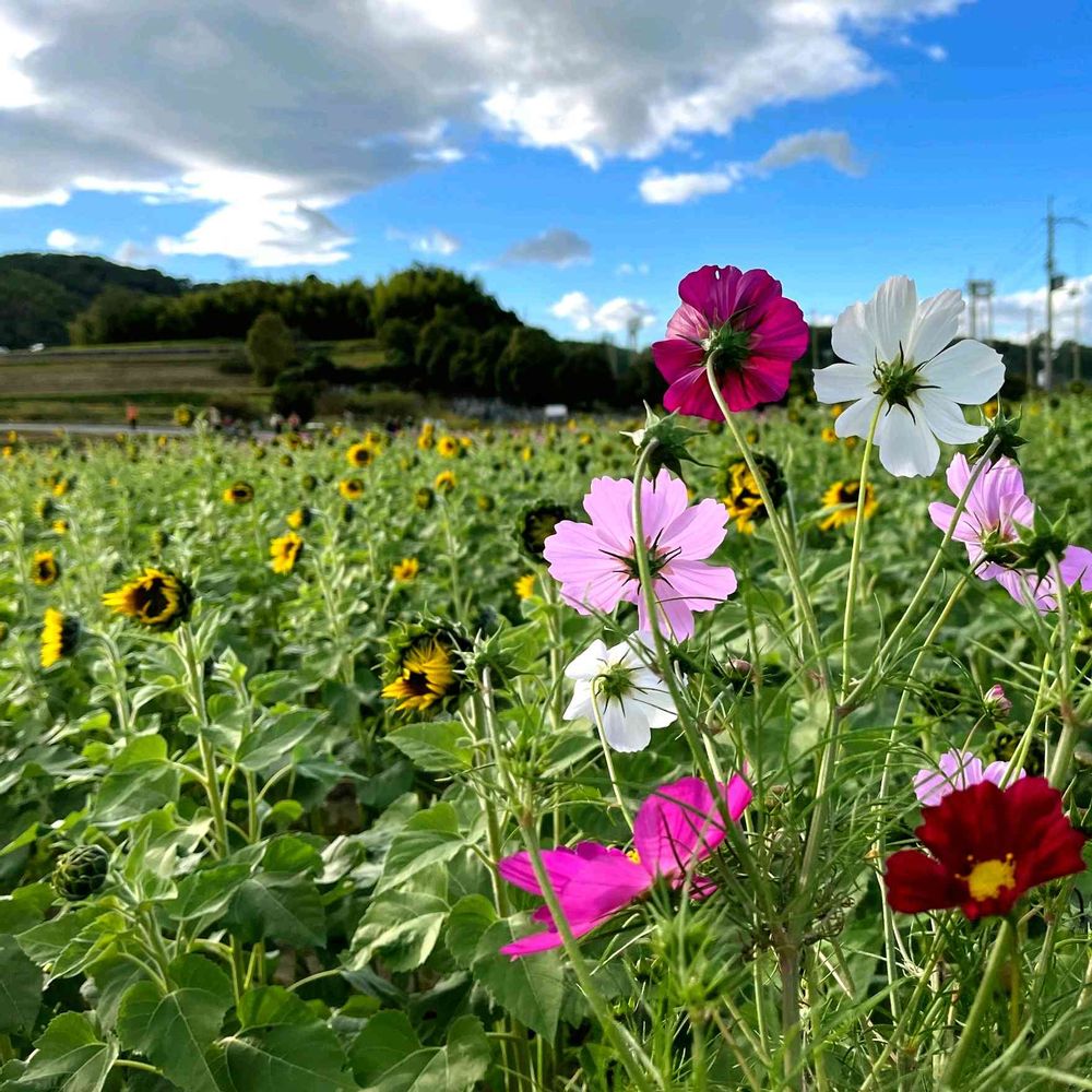 秋の空にはコスモス❣️…とおもってたらなんとひまわり🌻が咲いてました👀🙌