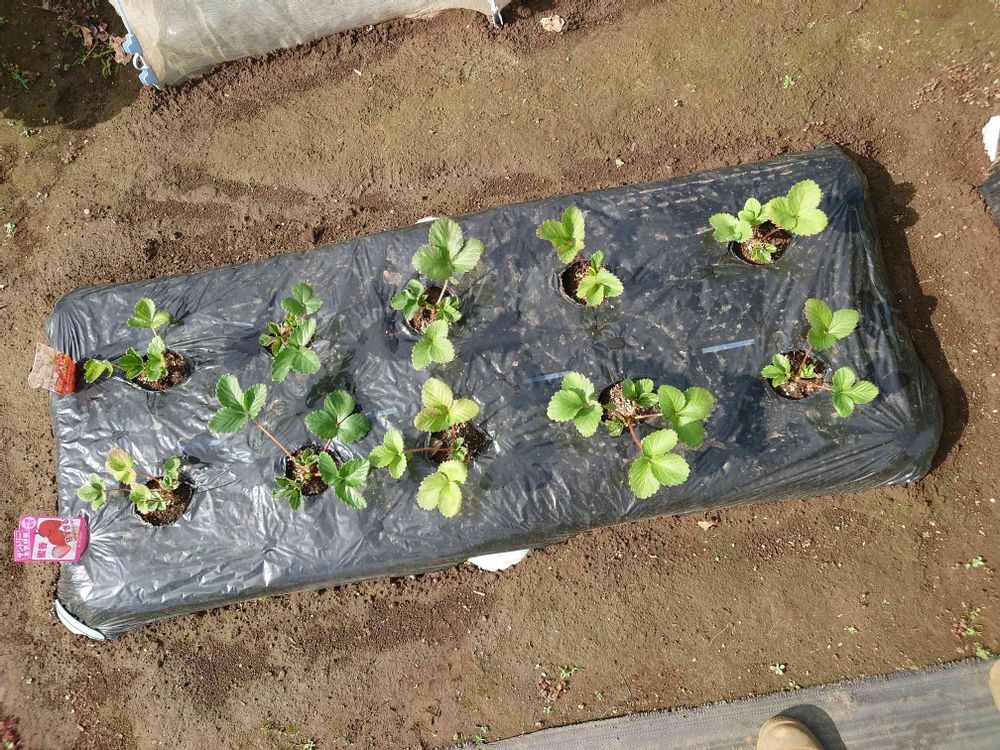 2週間前に定植したいちごです。うまく根付いたようで良かったです。ここから冬を越します。今日はナス2品種を片付けました🍆今年は当たり年でたくさん収穫ができました。