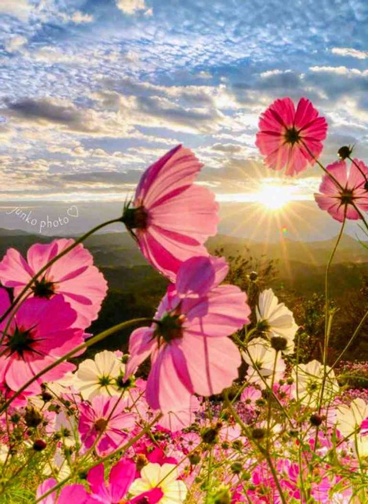楽しい秋の一日が終わり、又希望溢れる明日がやってくる、そんな気分にさせてくれるコスモスの映像、素敵です😆🎵🎵