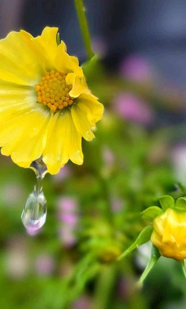 ちょうど雨粒が花びらから流れ落ちそうになって🤳