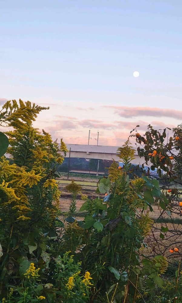 ⑤朝の畑から残月○セイタカアワダチソウ💛🌿占領ꉂ🤣𐤔