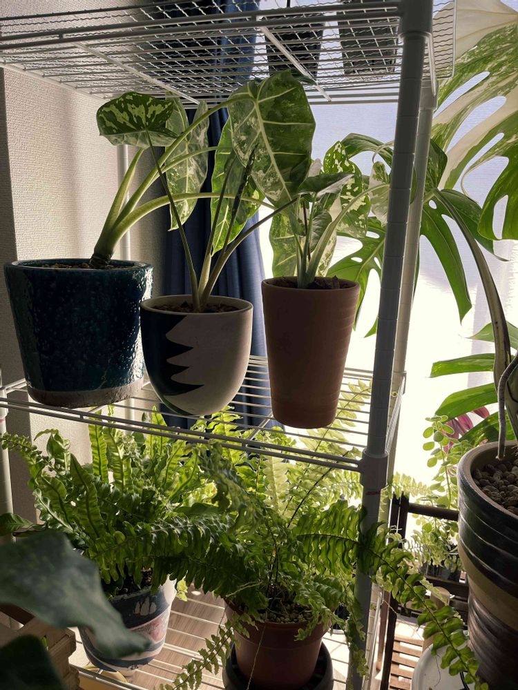 寒さに弱いシダやアロカシア関係はラックに置いて、周りにビニールシートを巻いて簡易ビニールハウスみたいにする予定です🤔