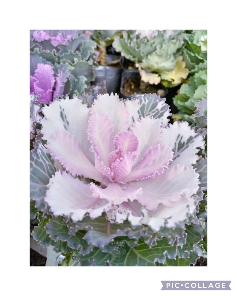 いろいろな葉牡丹が並んでました🤍💜🤍🍀