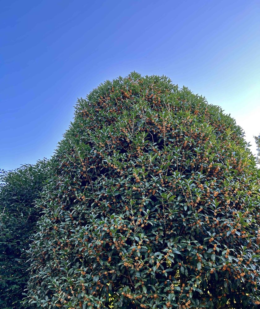 ご近所の山のような大木です。武蔵野市あたりでは今年の開花は10月15日でした(*^^*)例年10月01日に開花していたのに、ここ数年は9月に咲いて、2番バナもしっかり咲いたり、今年のように遅れたりと不順です。ちょっと自然界のリズムが不安( ˊᵕˋ ;)💦