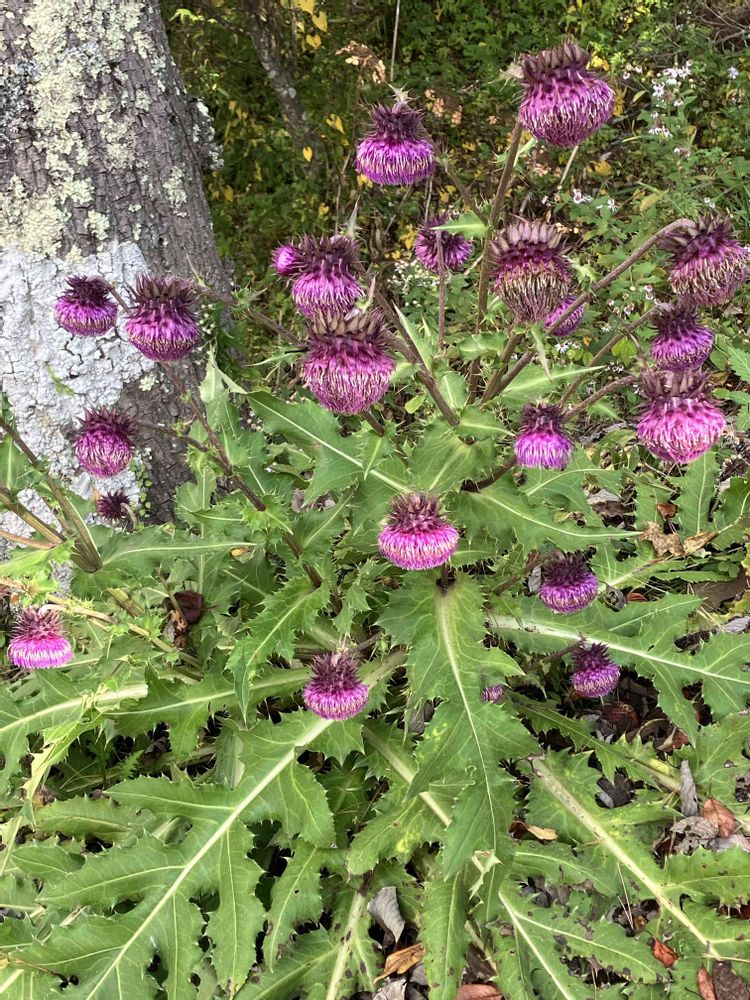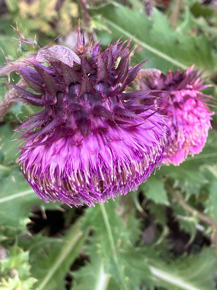 葉っぱがギザギザで痛そうですが、アメリカオニアザミほど鋭くないのでしょうね😄