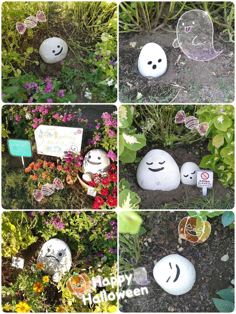 芝生広場の花壇にオバケちゃんが7体隠れてます。