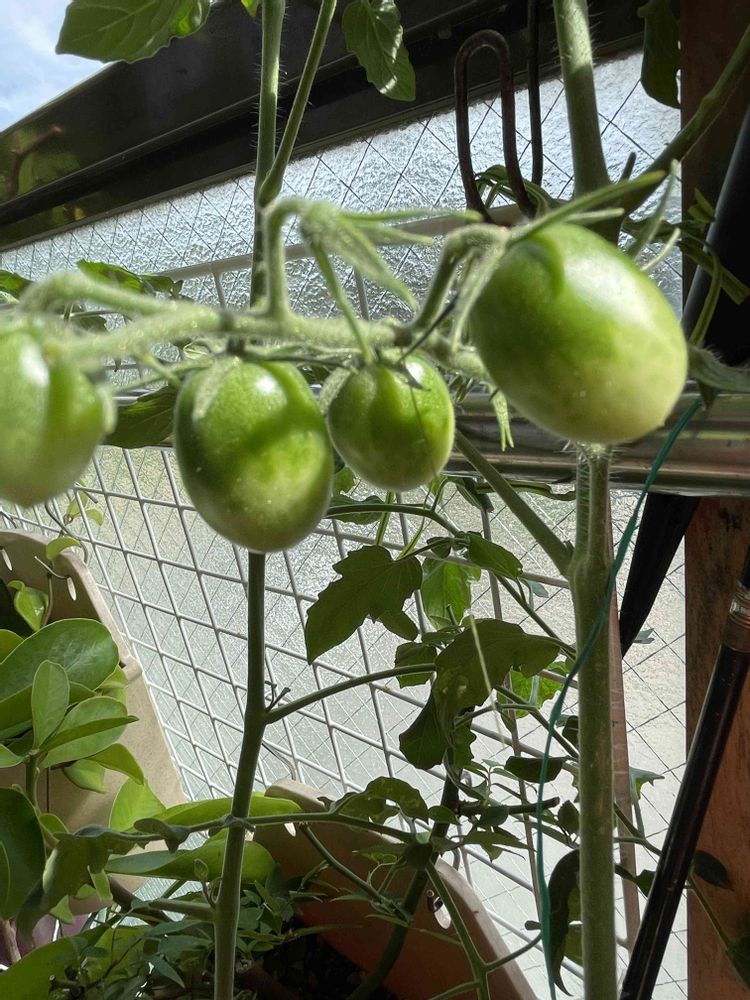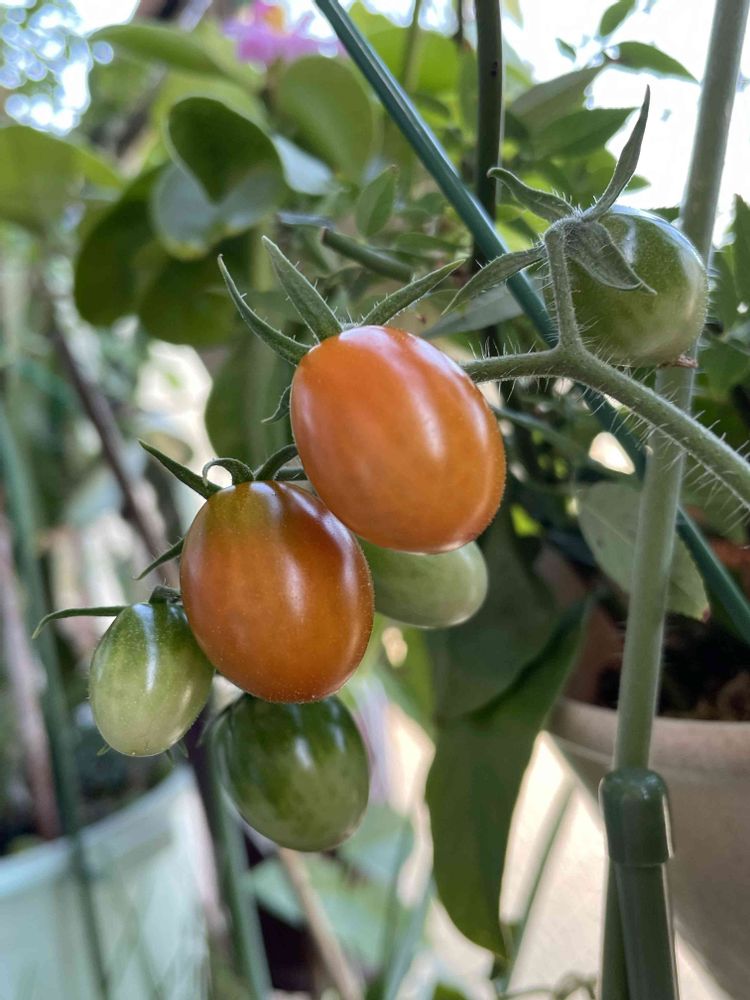スーパーで買ったパック入りのミニトマト、痛んでしまったのをプランターにポイポイ投げ捨てたのが芽を出し実ったものです🤭