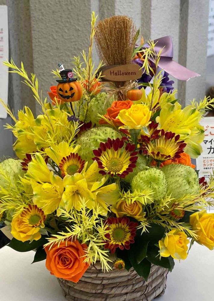 ハロウィン🎃仕様の花かごですね🤗明日から11月なんて、早すぎですねぇ〜😅💦