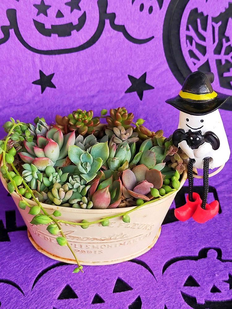 皆さんの真似してハロウィンぐらいは寄せ植えしなきゃと小さいの作ったよ😁🎶