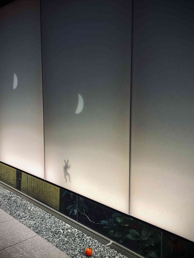 ② 東山温泉のホテル 温泉♨️へのエントランスロードに月の満ち欠けが描かれていました。🌙