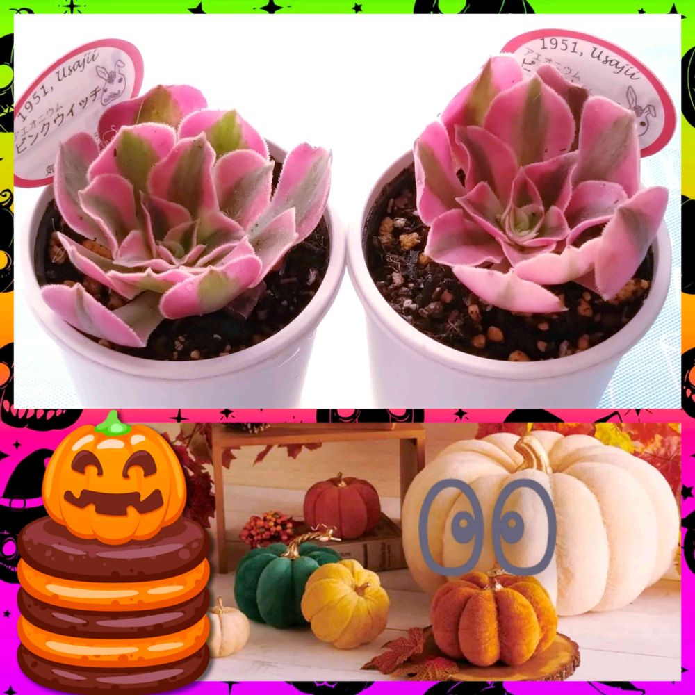 爽やかなピンク色のアエオニウムの彩りが、ハロウィン🎃祭りの雰囲気を盛り上げてくれる