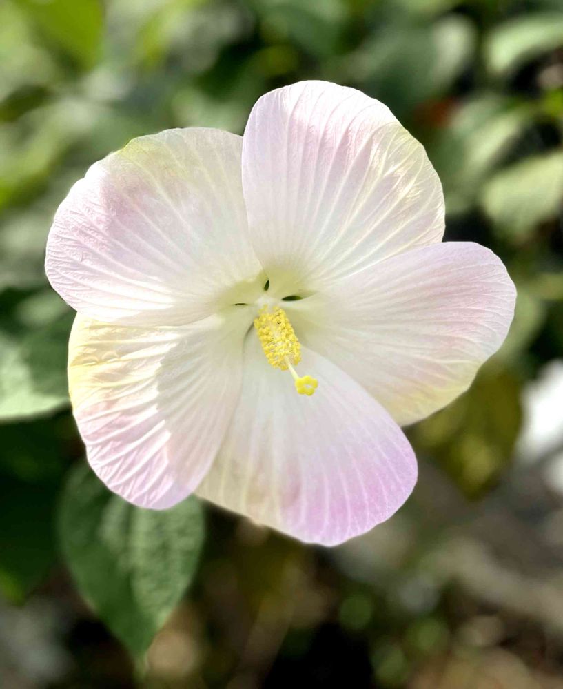 公園植え込みにて、20㎝くらいある大きなお花🌸遠目からも何々?と目を引く大きさ😳近くで見ると綺麗な色〜✨葉っぱに切れ込みがないのでアメリカフヨウかと思うのですが🤔