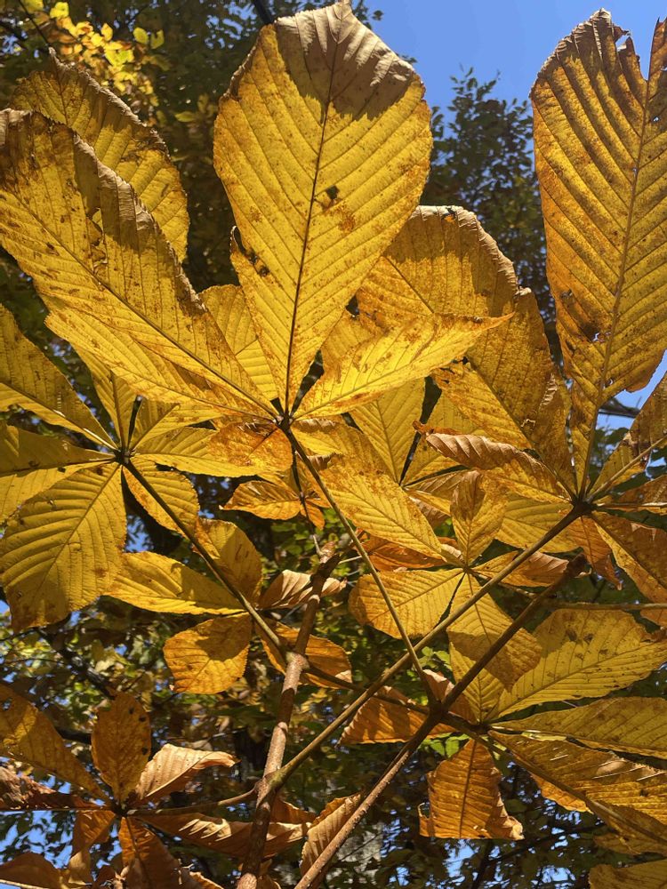 黄葉した葉の下にもうベタベタの芽が出ていました