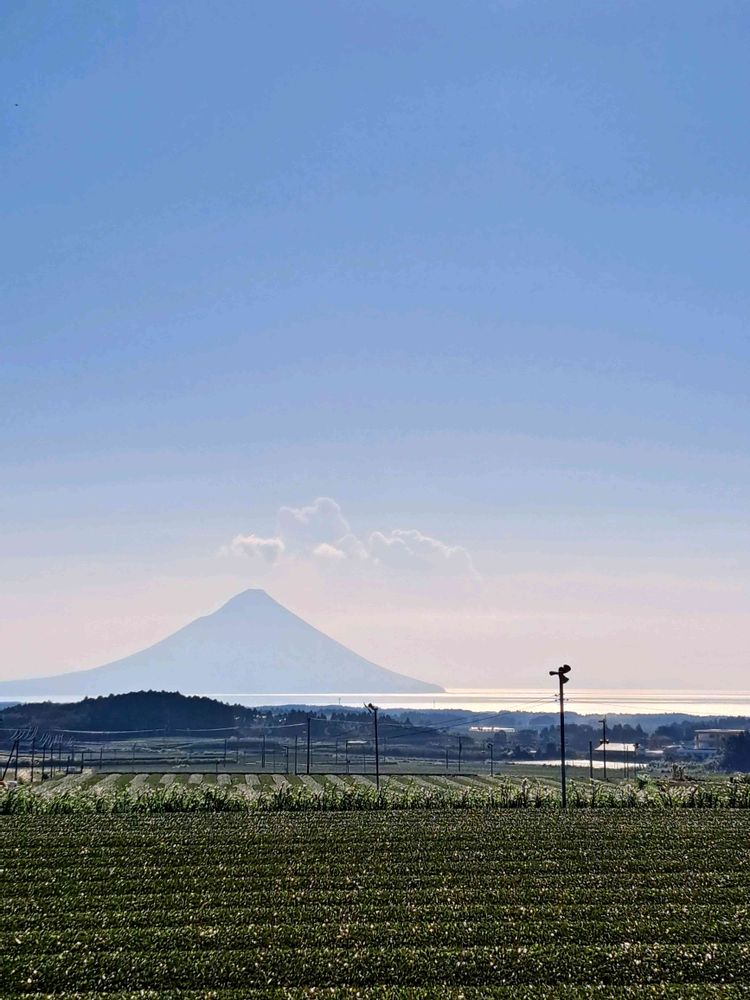 開聞岳の全貌がきれいに、海🌊も見えて、…脇見運転してしまいます🚗 ³₃☝️
